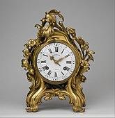 Similarly fine results could be achieved for lighting devices, such as chandeliers and candelabras, as well as for the ornamental metal mounts applied to clock cases and to ceramic pieces. In the hands of the Parisian marchands-merciers, the precursors of decorators, ormolu or gilt-bronze sculptures were used for bright, non-oxidizing fireplace accessories or for Rococo or Neoclassical mantel-clocks or wall-mounted clock-cases – a specialty of Charles Cressent (1685–1768) – complemented by rock-crystal drops on gilt-bronze chandeliers and wall-lights.