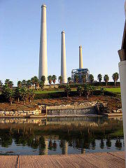 Orot Rabin (Hebrew: אורות רבין, lit. Rabin Lights) is a power station, as of 2016 Israel's largest. It is currently a 2.59GW coal-fired plant, although some of its generating units are in the process of conversion to a single-shaft combined-cycle gas power plant.[1] It is situated on the Mediterranean coast in Hadera, Israel and is owned and operated by the Israel Electric Corporation (IEC). The older, unmodernised four of its total six coal-fuelled units[1] will be closed by mid-2022 in order to eliminate this major source of air pollution in the country.[2]