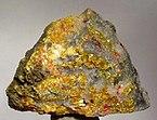 3. It is found in volcanic fumaroles, low-temperature hydrothermal veins, and hot springs and is formed both by sublimation and as a byproduct of the decay of another arsenic mineral, realgar. Orpiment takes its name from the Latin auripigmentum (aurum, "gold" + pigmentum, "pigment") because of its deep-yellow color.