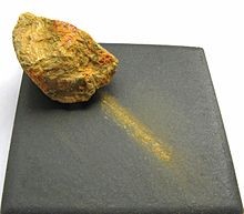 For centuries, orpiment was ground down and used as a pigment in painting and for sealing wax, and was even used in ancient China as a correction fluid.[7] It was one of the few clear, bright-yellow pigments available to artists until the 19th century. However, its extreme toxicity and incompatibility with other common pigments, including lead and copper-based substances such as verdigris and azurite,[8][6] meant that its use as a pigment ended when cadmium yellows, chromium yellows and organic dye-based colors were introduced during the 19th century.