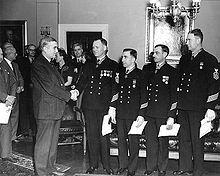 For extraordinary heroism in the line of his profession as a master diver throughout the rescue and salvage operations following the sinking of the U.S.S. Squalus on 23 May 1939. His leadership and devotion to duty in directing diving operations and in making important and difficult dives under the most hazardous conditions characterize conduct far above and beyond the ordinary call of duty.