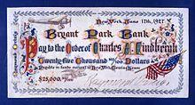 - ^ "Lindbergh Given Check By Orteig". The Gettysburg Times. New York. Associated Press. June 17, 1927. p. 2. Archived from the original on September 29, 2015. Retrieved 2013-09-24.