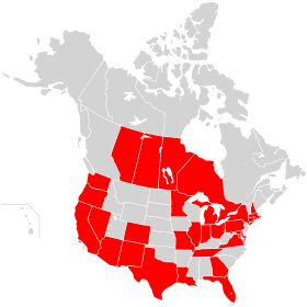 Its territory includes parishes, monasteries, and missions located in 26 states in the United States, as well as six provinces in Canada – Alberta, Arizona, British Columbia, California, Colorado, Connecticut, Florida, Georgia, Illinois, Indiana, Louisiana, Manitoba, Maryland, Massachusetts, Michigan, Minnesota, Missouri, New Hampshire, New Mexico, Nevada, New York, Ohio, Ontario, Oregon, Pennsylvania, Quebec, Rhode Island, Saskatchewan, Tennessee, Texas, Virginia, and Washington.