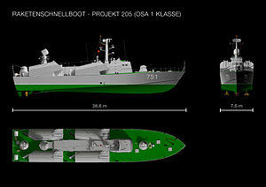 The Project 205 Moskit[1] (mosquito) more commonly known by their NATO reporting name Osa, are a class of missile boats developed for the Soviet Navy in the late 1950s. Until 1962 this was classified as a large torpedo boat.