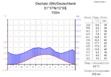 The average air temperature in Oschatz is approximately 8.6 °C,[2] the annual rainfall is about 570 millimeters.[3]