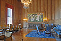 The room in which the City Council meets (Bystyresalen) is semi-circular. It is clad in oak and tapestries, the most noticeable of which was designed by Else Poulsson, the niece of the architect. Woven by Else Halling, it depicts St. Hallvard and the seven virtues. The artist hoped the design would remind the city's politicians of ethics and good decisionmaking.