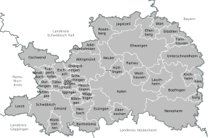 The Ostalbkreis is a Landkreis (district) in the east of Baden-Württemberg, Germany, on the border to Bavaria. Neighboring districts are (from the north clockwise) Schwäbisch Hall, Ansbach, Donau-Ries, Heidenheim, Göppingen and Rems-Murr.