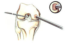 - ^ Johnson LL, Uitvlugt G, Austin MD, Detrisac DA, Johnson C (1990). "Osteochondritis dissecans of the knee: arthroscopic compression screw fixation". Arthroscopy. 6 (3): 179–89. doi:10.1016/0749-8063(90)90073-M. PMID 2206180.