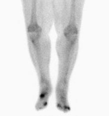 Nuclear medicine scans can be a helpful adjunct to MRI in patients who have metallic hardware that limits or prevents effective magnetic resonance. Generally a triple phase technetium 99 based scan will show increased uptake on all three phases. Gallium scans are 100% sensitive for osteomyelitis but not specific, and may be helpful in patients with metallic prostheses. Combined WBC imaging with marrow studies have 90% accuracy in diagnosing osteomyelitis.[23]