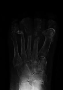 Differential diagnosisCharcot's joint, rheumatoid arthritis, infectious arthritis, giant cell tumor, cellulitis[1][3]