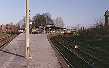Platform C was built in 1895/1896 for the Berlin trade exposition in Treptower Park.[3] It was taken out of service on 12 April 1966 due to disrepair,[3] as was platform B in the same year. Trains running towards the southern ring and from the northern ring then ran without stopping, while trains running in the respective opposite directions continued to stop at platform A.[3] Platform B was demolished in 1970, as was platform C in November 1978.[3]