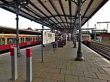 The commissioning of the new platform D followed on 7 October 2014.[31] S-Bahn trains running towards Lichtenberg initially stopped here on the northern edge of the platform. A reconstructed landmark supervisory building on the new platform as well as two historic roof pillars on the western platform are reminders of the old Ostkreuz. In this period, platform E went out of service and was subsequently rebuilt.[32]