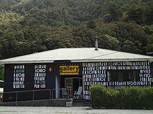 Not far from the hotel (originally opened in 1902 but rebuilt following a fire in 1911)[13] is the former post office which was built in 1952 to replace an earlier one. This has been refurbished into an art gallery known as the 'John Burns Gallery of Modern Art'. The complex exhibits world class art which is a surprise to many visitors, housed as it is in the middle of the Southern Alps. The former postmaster's house also survives.