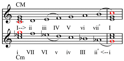 The 5-limit otonality is simply a just major chord, and the 5-limit utonality is a just minor chord. Thus otonality and utonality can be viewed as extensions of major and minor tonality respectively. However, whereas standard music theory views a minor chord as being built up from the root with a minor third and a perfect fifth, a utonality is viewed as descending from what's normally considered the "fifth" of the chord, so the correspondence is not perfect. This corresponds with the dualistic theory of Hugo Riemann: