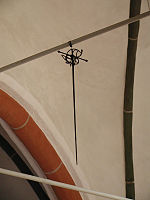 Hanging from the ceiling in the church is the rapier or Degen of a knight by the name of Macke. The legend of this relic comes from the time of witch burnings in the town of Otterndorf. The knight was in the service of a middle prince away from Hadeln, but the knight had learnt that his mother back in Otterndorf had been accused of witchcraft, found guilty, and so was to be burnt at the stake at the east gate of the town. The knight, who knew his mother was no witch, hurried back to seek a pardon from the Duke of Lauenburg, with whom he was in good favor. The duke, who appreciated the merits of the knight, granted a written pardon for his mother. The knight quickly rode to Otterndorf, but arrived too late to save his mother. Full of pain and heartache, the knight in his despair thrust the rapier into his chest and killed himself. The citizens of the town, realizing the mistake they had made, hung the blood soaked sword in the church, and the town never burnt a witch again.