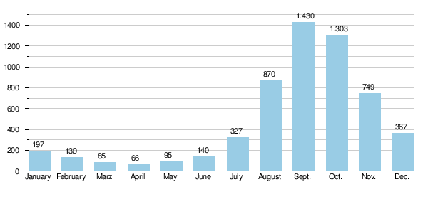 The flow of the river observed over 33 years (1951–84) in Moïssala a town in Chad about 150 km above the mouth of the Chari.[1] The at Moïssala observed average annual flow during this period was 480 m³ / s fed by an area of about 67,600 km 2 approximately 95% of the total catchment area of the River.