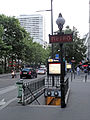 The station has three accesses leading to Avenue Jean-Jaurès, each consisting of a fixed staircase decorated with a Dervaux candelabrum: