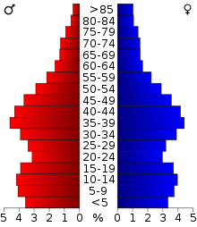 By age, 27.70% of the population was under 18, 8.90% from 18 to 24, 31.90% from 25 to 44, 20.70% from 45 to 64, and 10.90% were 65 or older. The median age was 34 years. For every 100 females there were 99.50 males. For every 100 females age 18 and over, there were 96.90 males.