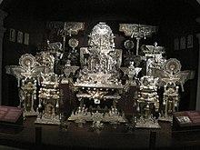 - James Hampton (1909–1964) was an African-American janitor who secretly built a large assemblage of religious art from scavenged materials, such as discarded light bulbs and aluminum foil[13]