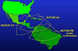 The United States Navy created their own system, the AN/TPS-71 ROTHR (Relocatable Over-the-Horizon Radar), which covers a 64-degree wedge-shaped area at ranges from 500 to 1,600 nautical miles (925 to 3,000 km). ROTHR was originally intended to monitor ship and aircraft movement over the Pacific, and thus allow coordinated fleet movements well in advance of an engagement. In 1991, a prototype ROTHR system was installed on the isolated Aleutian Island of Amchitka, Alaska, monitoring the eastern coast of Russia. It remained in use until 1993, and the equipment was later removed into storage. The first production systems were installed in the test site in Virginia for acceptance testing, but were then transitioned to counter the illegal drug trade, covering Central America and the Caribbean. The second production ROTHR was later set up in Texas, covering many of the same areas in the Caribbean, but also providing coverage over the Pacific as far south as Colombia. It also operates in the anti-drug trafficking role. The third, and final, production system was installed in Puerto Rico, extending anti-drug surveillance past the equator, deep into South America.