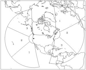 The United States Air Force Rome Laboratory had the first complete success with their AN/FPS-118 OTH-B.[8] A prototype with a 1 MW transmitter and a separate receiver was installed in Maine, offering coverage over a 60-degree arc between 900 and 3,300 km. A permanent transmitting facility was then built at Moscow AFS, a receiving facility at Columbia Falls Air Force Station, and an operational center between them in Bangor, Maine. The coverage could be extended with additional receivers, providing for complete coverage over a 180-degree arc (each 60 degree portion known as a "sector").