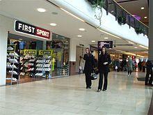 The centre reopened as a fully enclosed shopping mall in 2000 and follows the same basic layout as the 1960s structure. It is the only single-sided shopping mall in Europe. Two levels of retail units are enclosed by a long curved glass elevation looking out to the historic City Churches where a pedestrian precinct remains. It houses over 60 shops, cafes and restaurants as well as three car parks, two being multi-storey. The flagship stores are Debenhams, which is the only store that spans three floors, situated at the west end, and Primark at the opposite end.