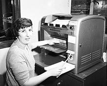 Allied to the US Navy development of the improved lightweight overhead projector was its adaptation of the Ozalid dry printing process, developed in Germany in 1923, to copy training documents and illustrations on projection transparencies, a process simple enough to be carried out in the field and which ensured uniformity of instructional material used.[17][18][19][20]