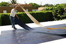 The United Solar Ovonic Corporation was at one time the world's largest (2008) manufacturer of photovoltaic laminates. In the broader category of thin film solar cells, as of 2007 the company was the second-largest U.S. manufacturer, after First Solar.[5] The solar cells are made of 11 triple junction amorphous silicon solar cells connected in series and have 11–13% in conversion efficiency.[6] The laminate encapsulation material was durable ETFE, high light-transmissive polymer. The laminates were sold under the trademark "UNI-SOLAR".