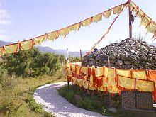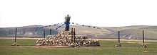 Ovoo, oboo, or obo (Mongolian: овоо, Traditional Mongol: ᠣᠪᠤᠭᠠ,[1] "heap"; Chinese: 敖包 áobāo, lit. "magnificent bundle [i.e. shrine]") are sacred stone heaps used as altars or shrines in Mongolian folk religious practice and in the religion of other Mongolic peoples. They are usually made from rocks with wood.