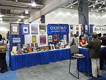 The university became involved in the print trade around 1480, and grew into a major printer of Bibles, prayer books, and scholarly works.[5] OUP took on the project that became the Oxford English Dictionary in the late 19th century, and expanded to meet the ever-rising costs of the work.[6] As a result, the last hundred years has seen Oxford publish further English and bilingual dictionaries, children's books, school textbooks, music, journals, the World's Classics series, and a range of English language teaching texts. Moves into international markets led to OUP opening its own offices outside the United Kingdom, beginning with New York City in 1896.[7] With the advent of computer technology and increasingly harsh trading conditions, the Press's printing house at Oxford was closed in 1989, and its former paper mill at Wolvercote was demolished in 2004. By contracting out its printing and binding operations, the modern OUP publishes some 6,000 new titles around the world each year.