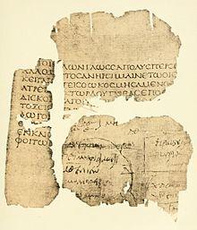 The findings at Oxyrhynchus also turned up the oldest and most complete diagrams from Euclid's Elements.[16] Fragments of Euclid discovered led to a re-evaluation of the accuracy of ancient sources for The Elements, revealing that the version of Theon of Alexandria has more authority than previously believed, according to Thomas Little Heath.[17]