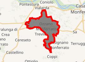 Ozzano Monferrato borders the following municipalities: Casale Monferrato, Cella Monte, Cereseto, Pontestura, Rosignano Monferrato, Sala Monferrato, San Giorgio Monferrato, and Treville.