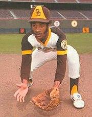After working with a hitting instructor during the offseason, Smith failed to record a base hit in his first 32 at-bats of the 1979 season.[29] Among players with enough at-bats to qualify for the 1979 National League Triple Crown, Smith finished the season last in batting average (.211), home runs (0), and RBI (27).[30] Off the field, conflict developed between Padres' ownership and the combination of Smith and his agent, Ed Gottlieb. The parties entered into a contract dispute before the 1980 season, and when negotiations lasted into spring training, the Padres renewed Smith's contract at his 1979 salary of $72,500[31] Smith's agent told the Padres the shortstop would forgo the season to race in the Tour de France, despite the fact Smith admitted to The Break Room on 96.5 WCMF in Rochester, New York he had never heard of the Tour. Angered by the Padres' attitude during those contract talks, Gottlieb took out a help-wanted ad in the San Diego Union, part of which read, "Padre baseball player wants part-time employment to supplement income."[32] When Joan Kroc, wife of Padres owner Ray Kroc, publicly offered Smith a job as an assistant gardener on her estate, Smith and Gottlieb's relationship with the organization deteriorated further.[33]