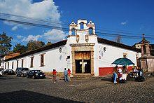 The Chapel del Humilladero was constructed by Vasco de Quiroga in 1553 on the site where the last Tarascan emperor, Tanganxoan II, was forced to kneel before the Spanish, giving the site its name (The Place of Humiliation).[1] The crucifix of this chapel was sculpted from a single block of cantera stone, both the body and the cross. It is said that Vasco de Quiroga had the piece sculpted in 1553, but it was not finished until 1628.[11]
