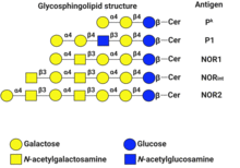 - ^ Duk, Maria; Reinhold, Bruce B; Reinhold, Vernon N; Kusnierz-Alejska, Grazyna; Lisowska, Elwira. "Structure of a neutral glycosphingolipid recognized by human antibodies in polyagglutinable erythrocytes from the rare NOR phenotype". Journal of Biological Chemistry. 276: 40574-40582. doi:10.1074/jbc.M102711200.