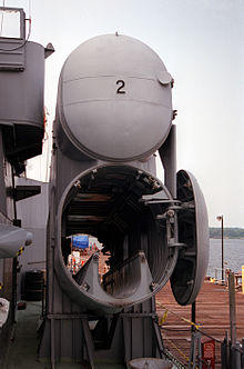 The warhead itself was a 500 kilograms (1,100 lb) hollow charge (HEAT), larger than the semi-armour piercing (SAP) warhead typical of anti-ship missiles. The launch was usually made with the help of electronic support measures (ESM) gear and Garpun radar at a range of between 5.5 and 27 kilometres (3.4 and 16.8 mi) due to the limitations of the targeting system. The Garpun's range against a destroyer was about 20 kilometres (12 mi).[1]