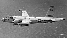 During the Vietnam War, the Neptune was used by the US Navy as a gunship, as an overland reconnaissance and sensor deployment aircraft, and in its traditional role as a maritime patrol aircraft. The Neptune was also utilized by the US Army's 1st Radio Research Company (Aviation), call sign "Crazy Cat", based at Cam Ranh Air Base in South Vietnam, as an electronic "ferret" aircraft intercepting low-powered tactical voice and morse code radio signals.[13] The US Army operated the P-2 from 1967[13] until 1972, flying 42,500 hours with no accidents.[14] Observation Squadron 67 (VO-67), call sign "Lindy", was the only P-2 Neptune aircraft squadron to ever receive the Presidential Unit Citation, flying Igloo White missions sowing seismic and acoustic sensors over the Ho Chi Minh Trail.[15] VO-67 lost three OP-2E aircraft and 20 aircrew to ground fire during its secret missions into Laos and Vietnam in 1967–68. The Republic of China Air Force (ROCAF) secret 34th Black Bat Squadron's RB-69A/P2V-7U ELINT/SIGINT aircraft flew a low level electronic reconnaissance from Da Nang Air Base, flying over Thanh Hóa Province on 20 August 1963 to investigate an air resupply drop zone that turned out to be a trap for a ROCAF C-123B airdrop mission 10 days earlier due to the air-inserted agents having been captured and turned. Next year, an air defense radar mapping mission was also flown by 34th Squadron's RB-69A/P2V-7U aircraft into North Vietnam and Laos on the night of 16 March 1964. The RB-69A took off from Da Nang, flew up the Gulf of Tonkin before coasting in near Haiphong, then flew down North Vietnam and the Laos border. The mission was requested by SOG for helping plan the insert or resupply of agents. Seven AAA sites, 14 early warning radar sites and two GCI radar signals were detected.[12]