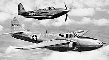 Five of the Airacomets, a pair of XP-59As, two YP-59As, and a P-59B, had open-air flight observer cockpits (similar to those of biplanes) fitted in the nose with a small windscreen, replacing the armament bay. The XP-59As were used for flight demonstrations and testing, but one of the latter pair was used as a "mother ship" for the other modified YP-59A during remote control trials in late 1944 and early 1945. After the drone crashed during take off on 23 March, a P-59B was modified to serve as its replacement.[7][8] During diving trials in 1944, one YP-59A was forced to make a belly landing and another crashed when its entire empennage broke away.[9]