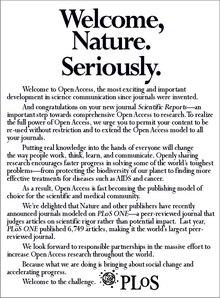 - ^ a b Giles, J. (2007). "Open-Access Journal Will Publish First, Judge Later". Nature. 445 (7123): 9. Bibcode:2007Natur.445....9G. doi:10.1038/445009a. PMID 17203032.