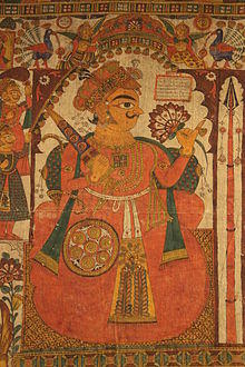 Pabuji is a folk-deity of Rajasthan in India who is also worshiped in parts of Gujarat and the Indus plain.[1] He lived in the 14th century in Rajasthan. He was one of four children of Dhadal Rathore of village Kolu, two boys (Buro and Pabuji) and two girls (Sona and Pema). The historical Pabuji was a mediaeval Rajput prince; he is now widely worshipped as a deity by Rajputs of Rajasthan, Rabari herdsmen and others throughout the Rajasthan countryside; and he is served by Nayak priests.
