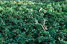 Pachysandra /ˌpækiˈsændrə/[1] is a genus of five species of evergreen perennials or subshrubs, belonging to the boxwood family Buxaceae. The species are native to eastern Asia and southeast North America, some reaching a height of 20–45 cm (7.9–17.7 in), with only weakly woody stems. The leaves are alternate, leathery, with a coarsely toothed margin, and are typically 5–10 cm (2.0–3.9 in) long. The small uni-sexual blooms are greenish-white and produced in late spring or early summer.[2]