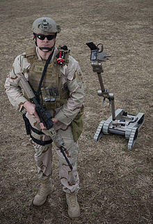 PackBot is a series of military robots by Endeavor Robotics (previously by iRobot[1]), an international robotics company founded in 2016, created from iRobot, that previously produced military robots since 1990. More than 2000 were used in Iraq and Afghanistan.[2] They were also used to aid searching through the debris of the World Trade Center after 9/11 in 2001.[3] Another instance of the PackBot technology being implemented was to the damaged Fukushima nuclear plant after the 2011 Tōhoku earthquake and tsunami where they were the first to assess the site.[4] As of November 2014, the U.S. Army is refurbishing 224 iRobot 510 robots.[5] The PackBot technology is also used in collaboration with NASA for their rovers and probes.