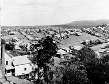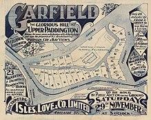 British settlement in Paddington commenced in the 1850s and the area was known as "Ti-Tree Flats" as the first residents moved there to cultivate gardens on the flats and to cut timber. The first sale of land occurred in 1859 with the sale of fifty-five lots.[6] The name Paddington comes from the name of the farm of Mr B, Clay who named his farm after his London birthplace of Paddington. The Paddington farm was sold and subdivided in 1864.[3]