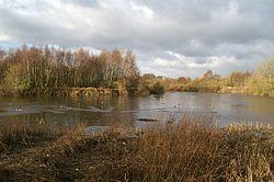 5 kilometres (3 mi) east of Warrington town centre, Padgate lies between the Liverpool and Greater Manchester urban areas. It is 35 kilometres (22 mi) east of Liverpool, 26 kilometres (16 mi) west of Manchester, and 47 kilometres (29 mi) northeast of Chester.[1] The suburb is crossed to the south by the river Mersey and is close to the Manchester Ship Canal. A small tributary of the Mersey, Padgate Brook, runs through it roughly north-south, joining the Mersey to the south.