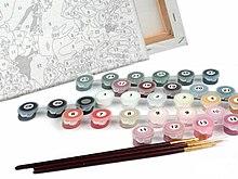 Paint by number or painting by numbers are kits having a board on which light markings to indicate areas to paint, and each area has a number and a corresponding numbered paint to use. The kits come with little compartmentalised boxes where the numbered colour pigments are stored. The users are encouraged to wash the paintbrush every time a new numbered colour is being used. The kits were invented, developed and marketed in 1950 by Max S. Klein, an engineer and owner of the Palmer Paint Company of Detroit, Michigan, and Dan Robbins, a commercial artist.[1]