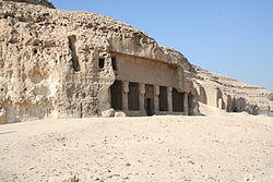 The most famous temple of Pakhet was an underground, cavernous shrine that was built by Hatshepsut near al Minya,[1] among thirty-nine ancient tombs of Middle Kingdom nomarchs of the Oryx nome, who governed from Hebenu, in an area where many quarries exist. This is in the middle of Egypt, on the east bank of the Nile. A tomb on the east bank is not traditional (the west was), but the terrain to the west was most difficult. A more ancient temple to this goddess at the location is known but has not survived. Hatshepsut is known to have restored temples in this region that had been damaged by the Hyksos invaders.