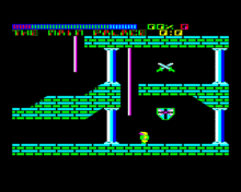 The player is not automatically killed if they come into contact with hazards; instead the player is allocated a set amount of energy (but this time measured by a bar, subdivided into units), which is depleted through contact, and can be replenished by collecting objects shaped like top hats. As in Citadel, the game is divided into 'rooms' or screens and if the player loses too much energy in a room, the screen turns red and the player is transported back to where they entered the room. This prevents players from passing through a room simply by walking through enemies and taking the damage.