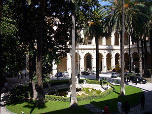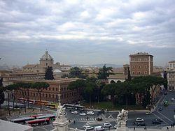 The Palazzo Venezia (Italian: [paˈlattso veˈnɛttsja]), formerly Palace of St. Mark, is a palazzo (palace) in central Rome, Italy, just north of the Capitoline Hill. The original structure of this great architectural complex consisted of a modest medieval house intended as the residence of the cardinals appointed to the church of San Marco. In 1469 it became a residential papal palace, having undergone a massive extension, and in 1564, Pope Pius IV, to win the sympathies of the Republic of Venice, gave the mansion to the Venetian embassy to Rome on the terms that part of the building would be kept as a residence for the cardinals, the Apartment Cibo, and that the republic would provide for the building's maintenance and future restoration. The palace faces Piazza Venezia and Via del Plebiscito. It currently houses the National Museum of the Palazzo Venezia.