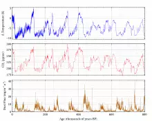 - ^ Jouzel, J.; Masson-Delmotte, V.; Cattani, O.; Dreyfus, G.; Falourd, S.; Hoffmann, G.; Minster, B.; Nouet, J.; Barnola, J. M. (10 August 2007). "Orbital and Millennial Antarctic Climate Variability over the Past 800,000 Years" (PDF). Science. 317 (5839): 793–796. Bibcode:2007Sci...317..793J. doi:10.1126/science.1141038. ISSN 0036-8075. PMID 17615306. S2CID 30125808.