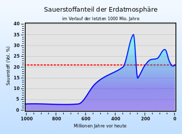 The amount of oxygen in the atmosphere has fluctuated over the last 600 million years, reaching a peak of 35%[18] during the Carboniferous period, significantly higher than today's 21%. Two main processes govern changes in the atmosphere: plants use carbon dioxide from the atmosphere, releasing oxygen and the breakdown of pyrite and volcanic eruptions release sulfur into the atmosphere, which oxidizes and hence reduces the amount of oxygen in the atmosphere. However, volcanic eruptions also release carbon dioxide, which plants can convert to oxygen. The exact cause of the variation of the amount of oxygen in the atmosphere is not known. Periods with much oxygen in the atmosphere are associated with rapid development of animals. Today's atmosphere contains 21% oxygen, which is high enough for rapid development of animals.[19]